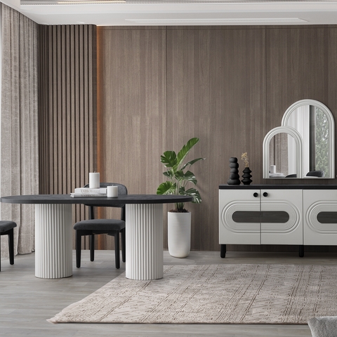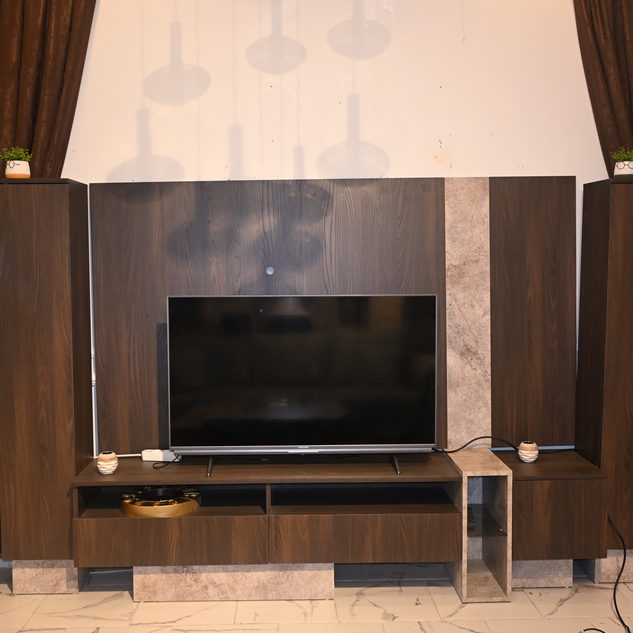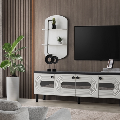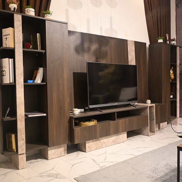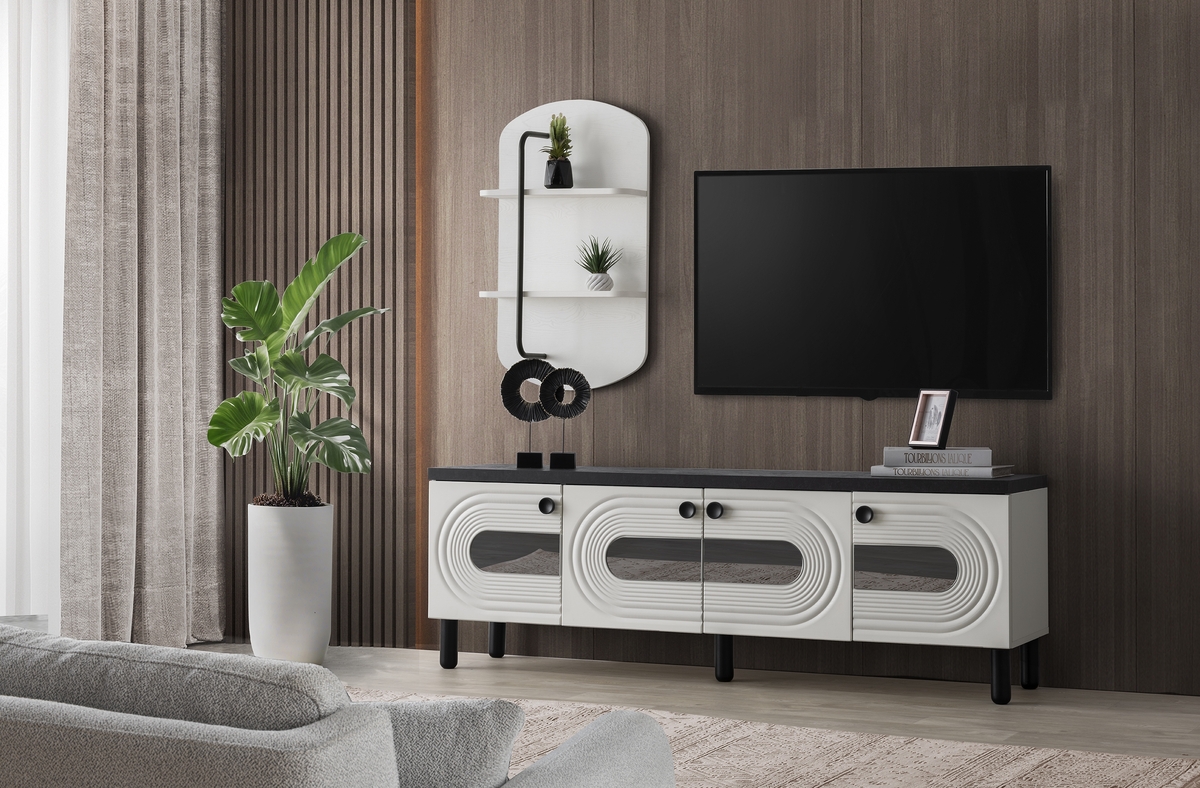 Ana ünite: 217 cm genişlik, 55 cm yükseklik, 45 cm derinlik ölçüleriyle geniş ekranlar için ideal alan sunarken; yan blok ise 173 cm yükseklik, 83 cm genişlik ve 30 cm derinliğiyle hem depolama hem de dekoratif kullanım için harika bir çözüm sunuyor.